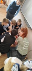 И сегодня для обучающихся 1 "б" и 2 "б" классов инструктор по первой помощи Родина Янина Дмитриевна провела практическое занятие по оказанию первой помощи пострадавшим.